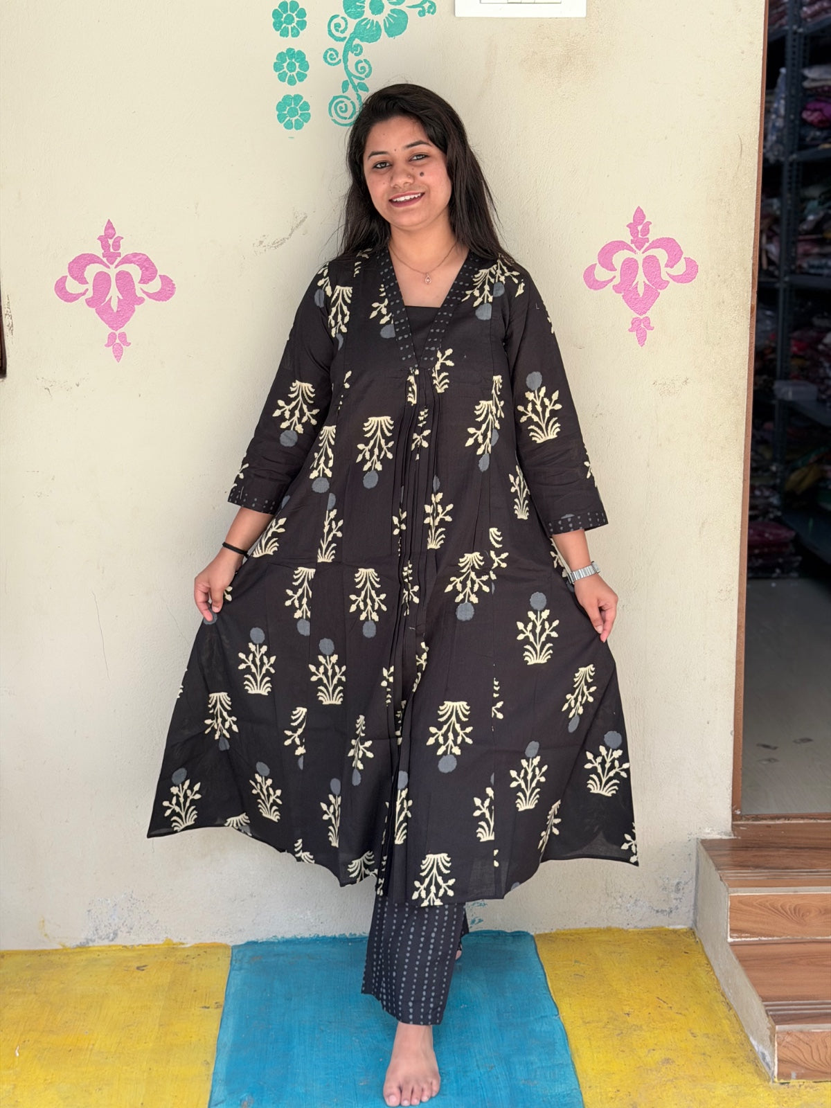 A Line “Feeding Kurti with Pant” usually means a kurti designed for breastfeeding (feeding-friendly) paired with pants. These kurtis have hidden zippers, layers, or openings that make nursing easy while still looking like a normal kurti. 😊