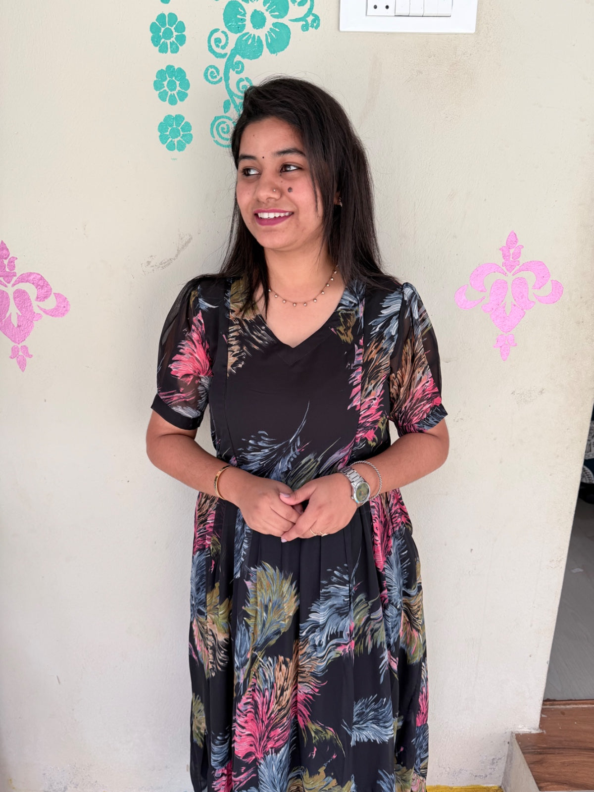This Georgette Floral Frock combines lightweight comfort with elegant floral patterns, making it ideal for both casual outings and semi-formal occasions.