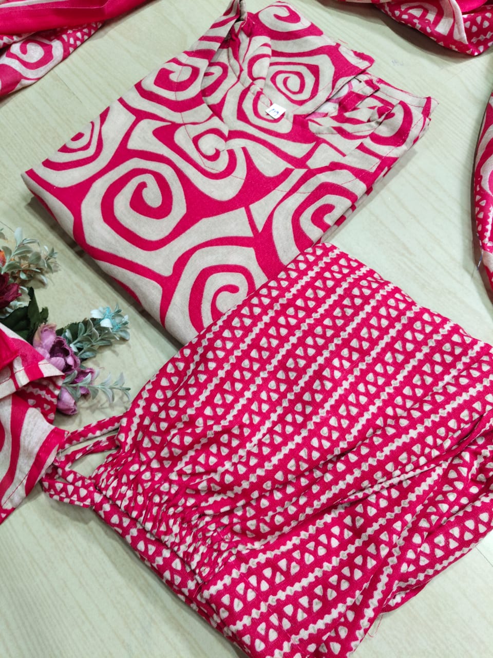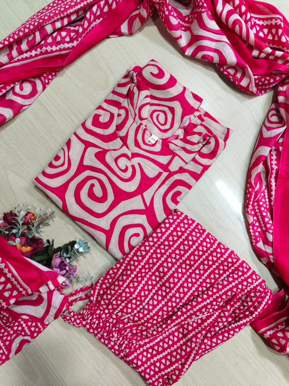 Premium cotton MIXED chanderi kurti with pant and dupatta set