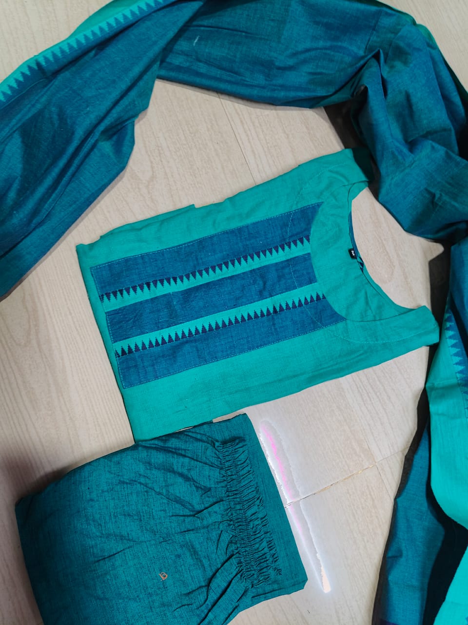 A cotton kurthi set typically includes: