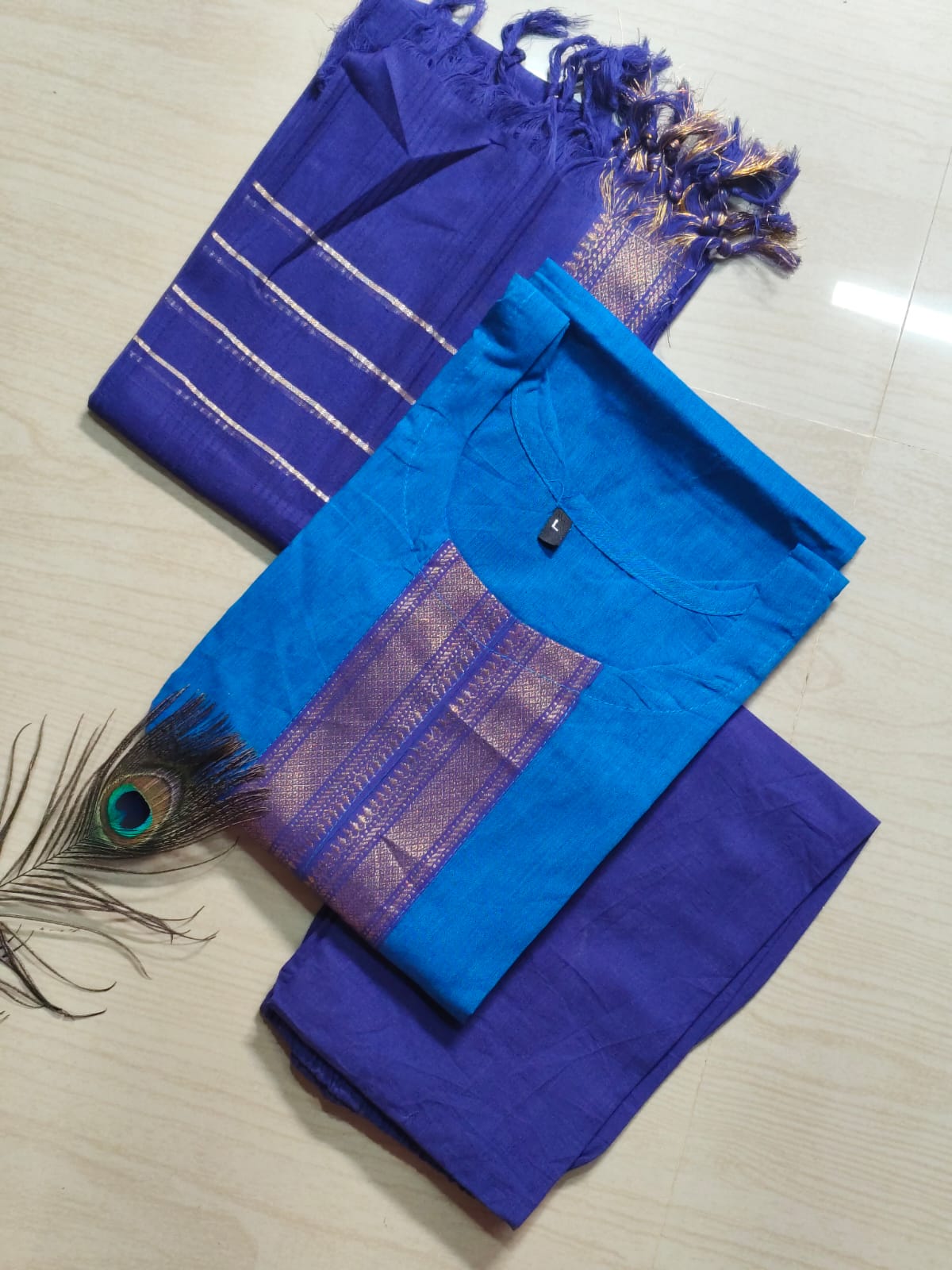 A cotton kurthi set typically includes: