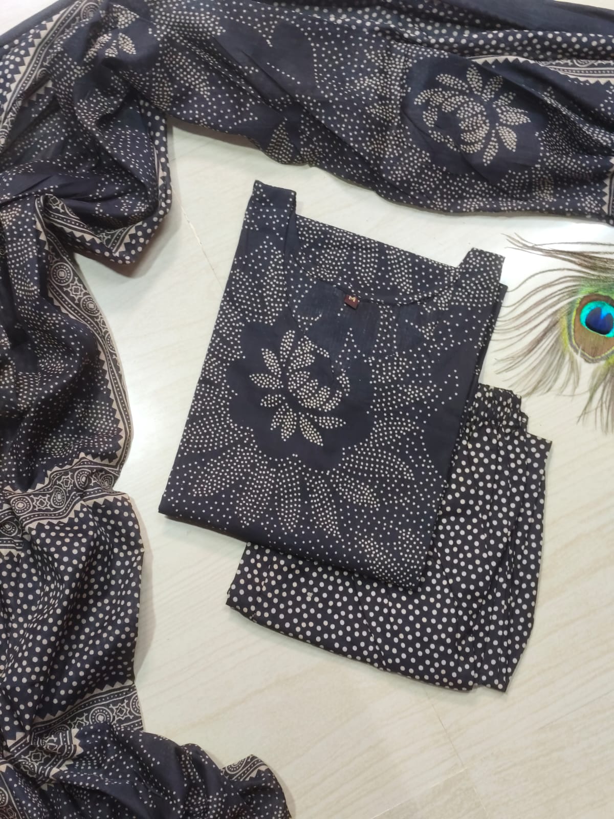 Kurthi (Top): longer, made of breathable cotton fabric with prints like floral, block,