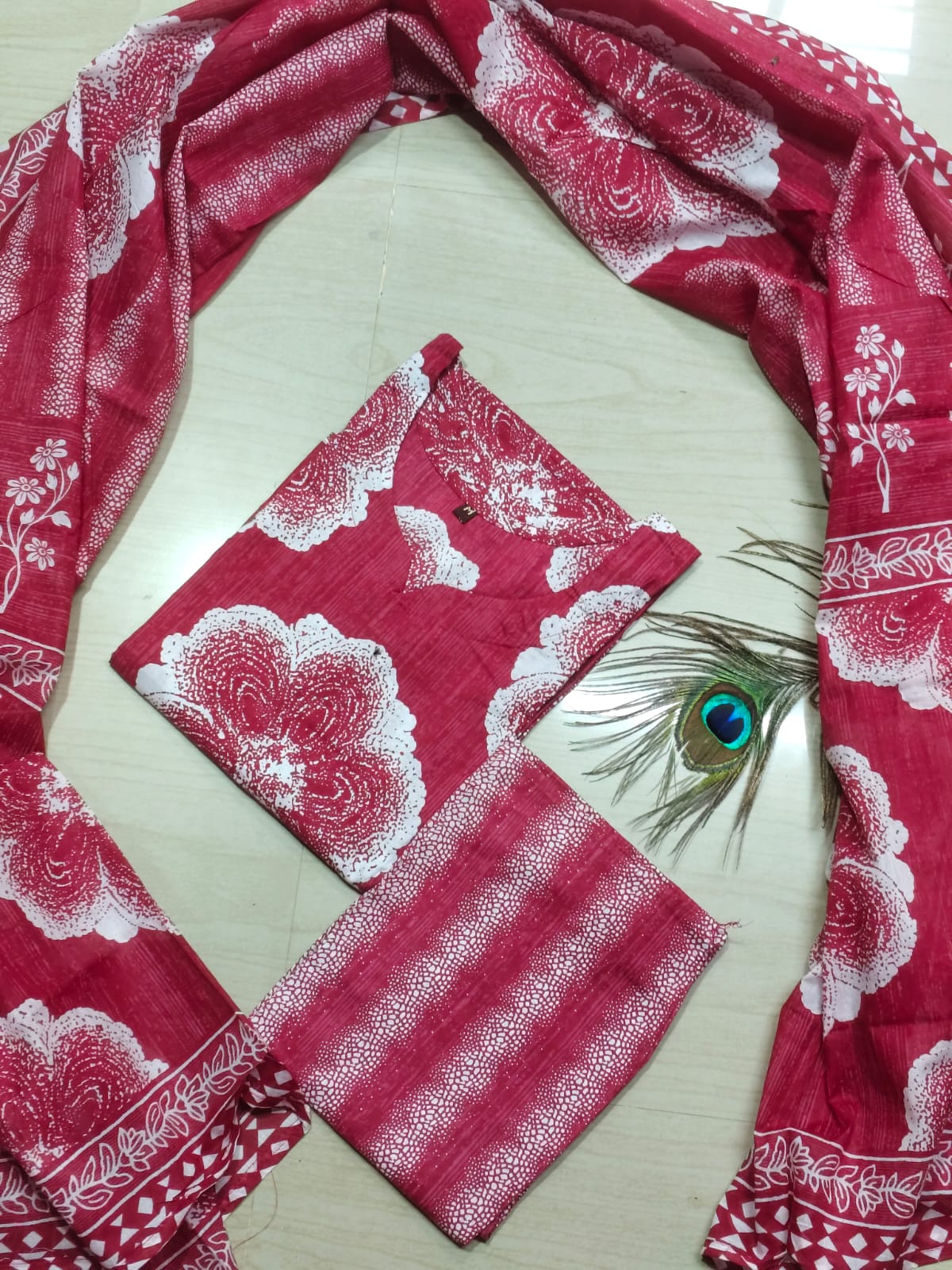 Cotton Kurthi with Pant and Dupatta Set