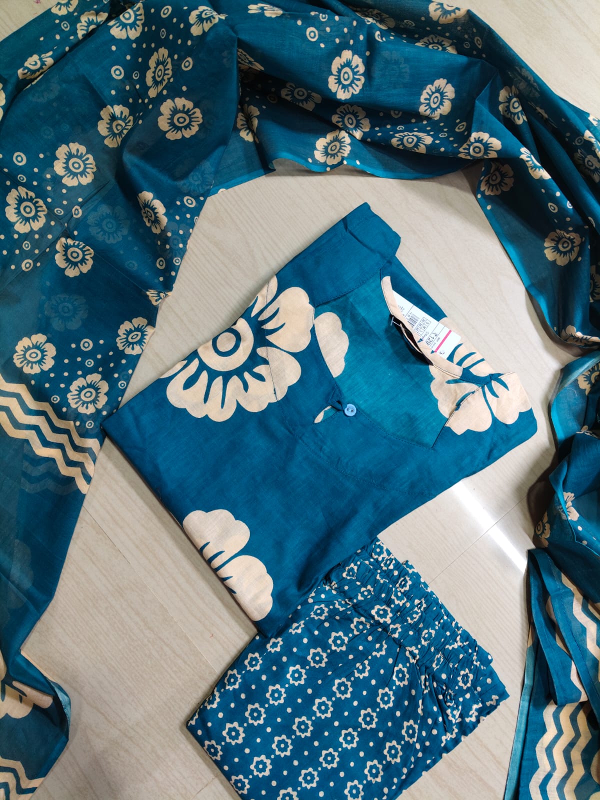 Kurthi (Top): longer, made of breathable cotton fabric with prints like floral, block,