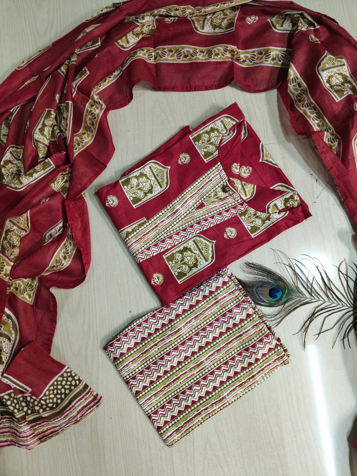 Cotton Kurthi with Pant and Dupatta Set