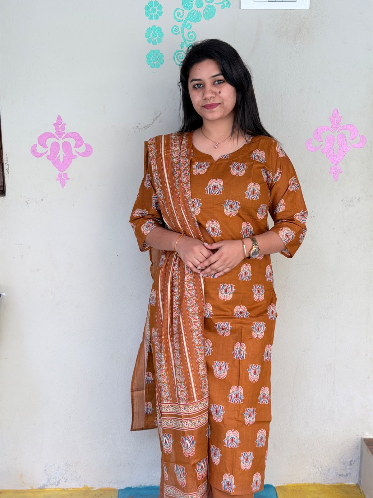 Kurthi (Top): longer, made of breathable cotton fabric with prints like floral, block,