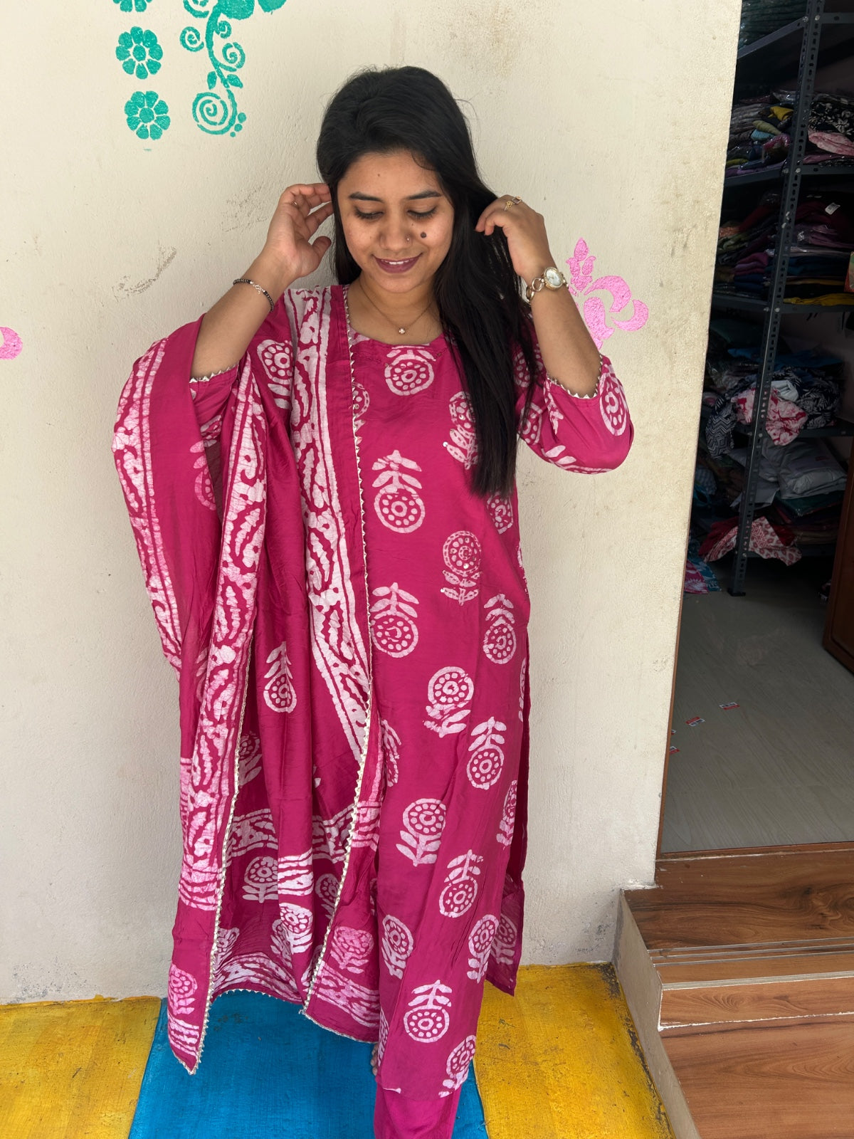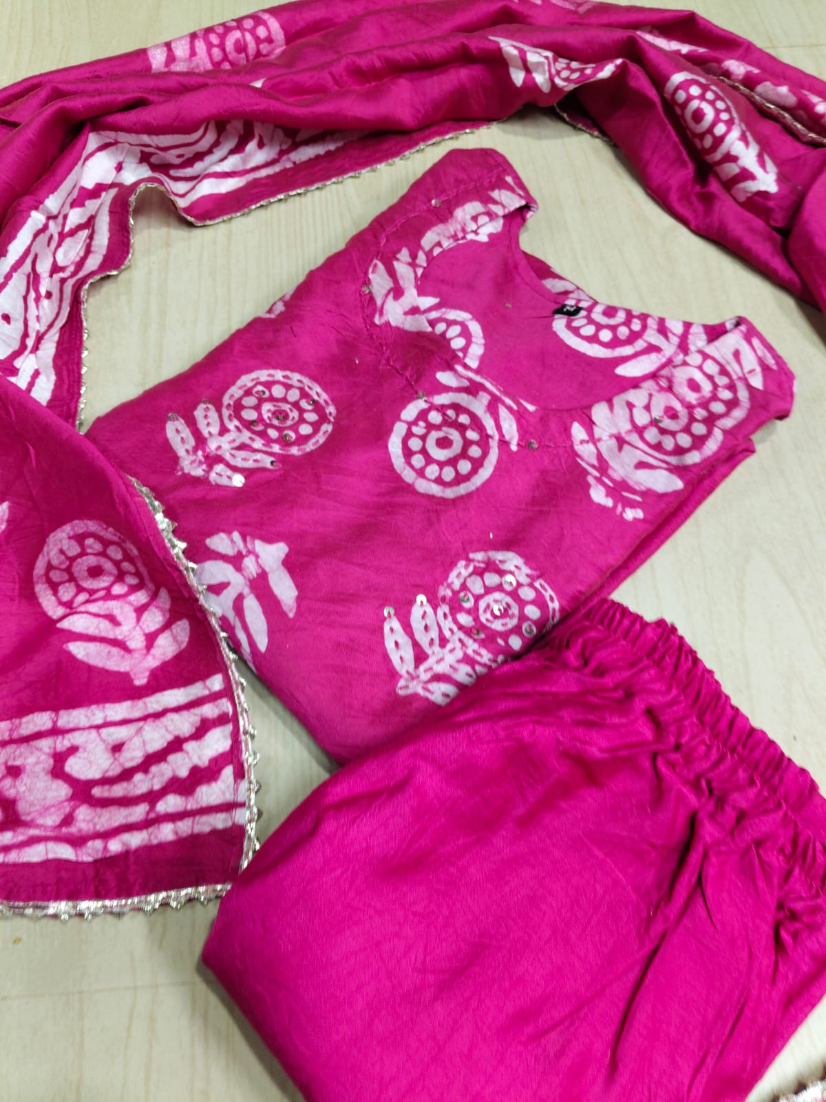 Upgrade your ethnic wardrobe with our Batik Kurti Set. This full set kurti, comfortable pant, and matching duppata. Perfect for any occasion, add a touch of traditional elegance to your style.