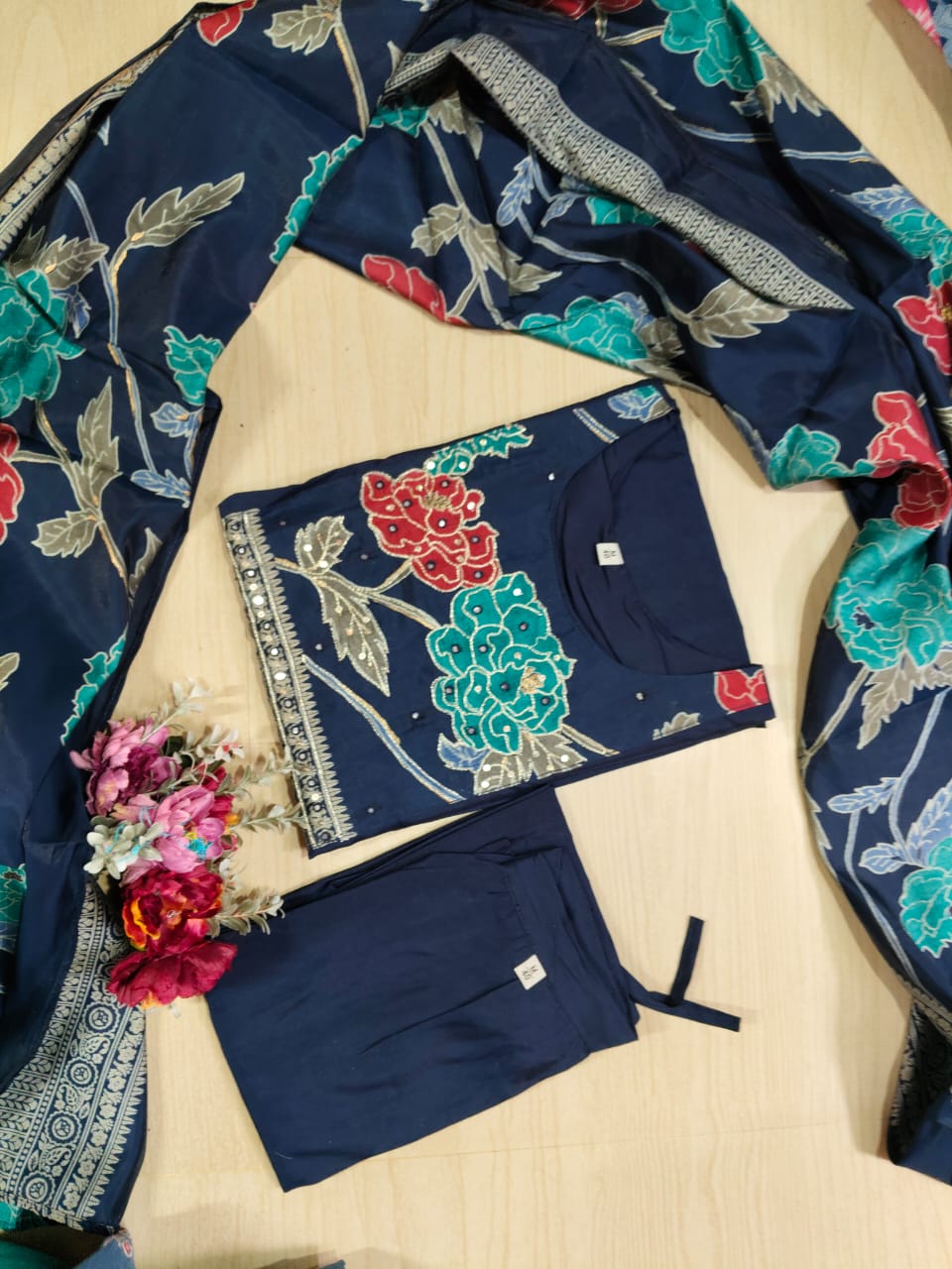 Premium Modal Chanderi Silk Kurti with Pant and Dupatta